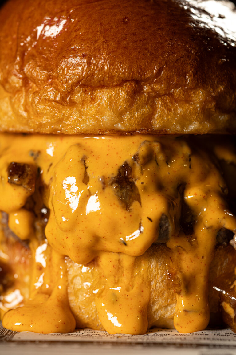 Pero en vez de echar el cierre y llorar en una esquina, nos metimos de cabeza en el mundo burger. Nos obsesionamos (nivel friki) con crear algo que nos representara de verdad. Y así dimos con nuestra droga: las burgers chorreantes. Las que te pringan las manos, te mojan el alma y te hacen cerrar los ojos del gusto.
